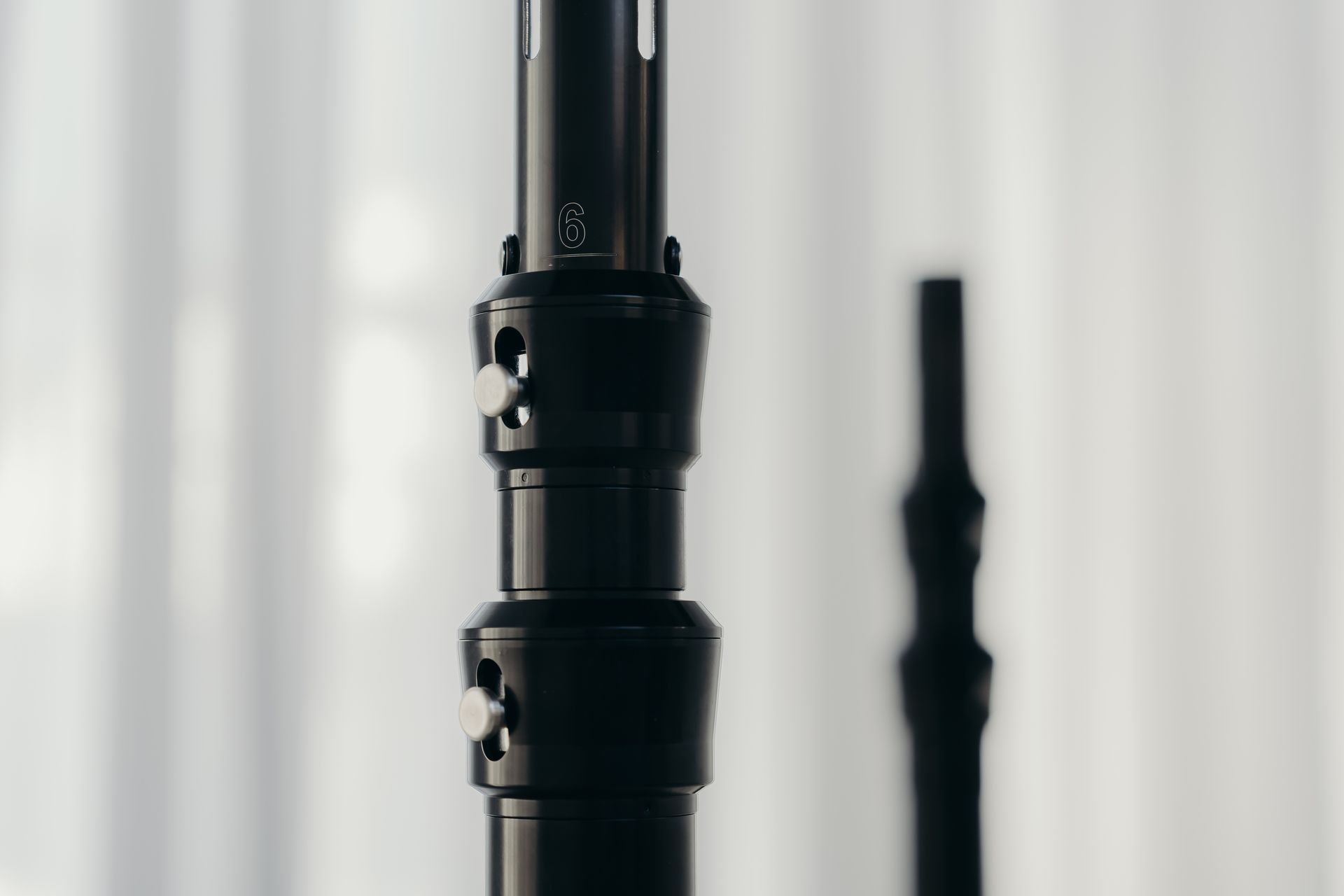 Adjustable black push up pole, height from 1.8m-4.3m, with base plate & spigot.