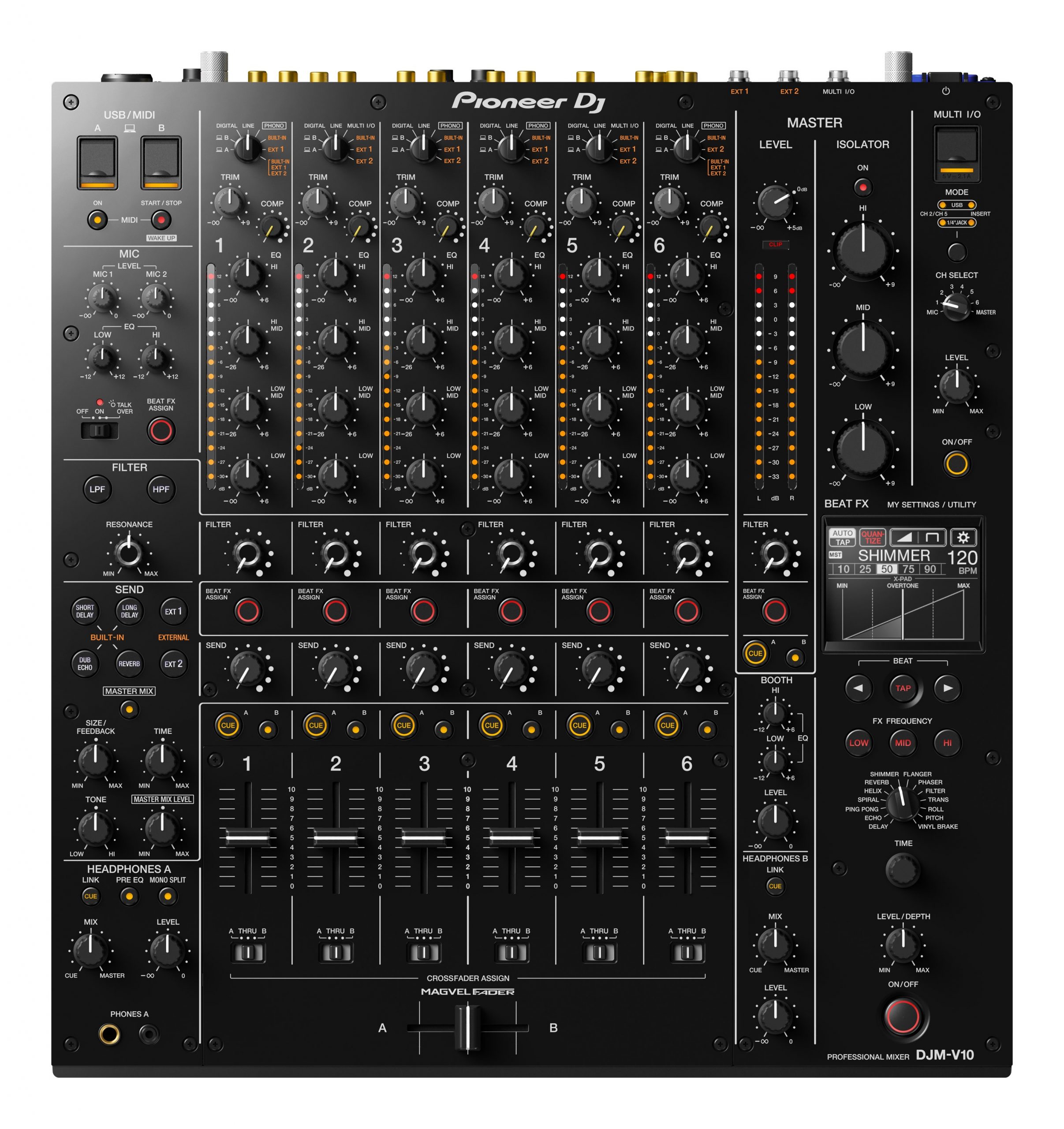 The Pioneer DJM-V10 is a professional 6-channel unit loaded with unique features built to allow the most creative DJs to expand beyond what is possible. The DJM-V10 mixer produces warm audio full of energy and presence and is perfect for those DJs wanting to get creative with their mixing and layering with multiple CDJ or sampler inputs. You can view full specifications for the mixer at the Pioneer website here.